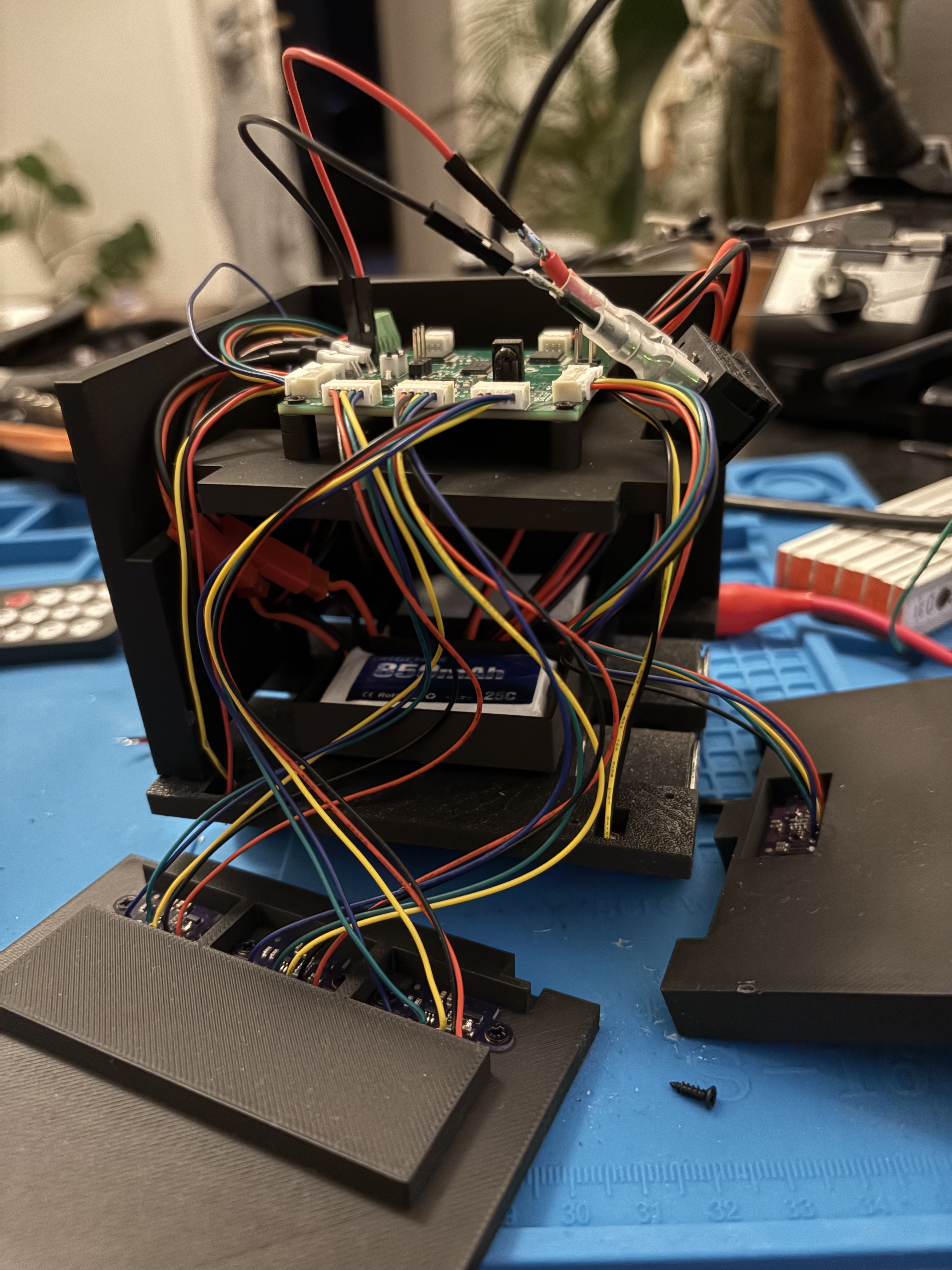 For both the firmware and the PCB, I used the original project as a reference, while trying to design and implement some parts of the robot myself. In particular, I adopted a different software architecture while reusing code from the original project especially for sensor drivers and state machine. On the hardware side, some components used in the original PCB were not available through JLCPCB, the manufacturer I used, which required selecting alternative parts and adapting the schematic and layout accordingly.